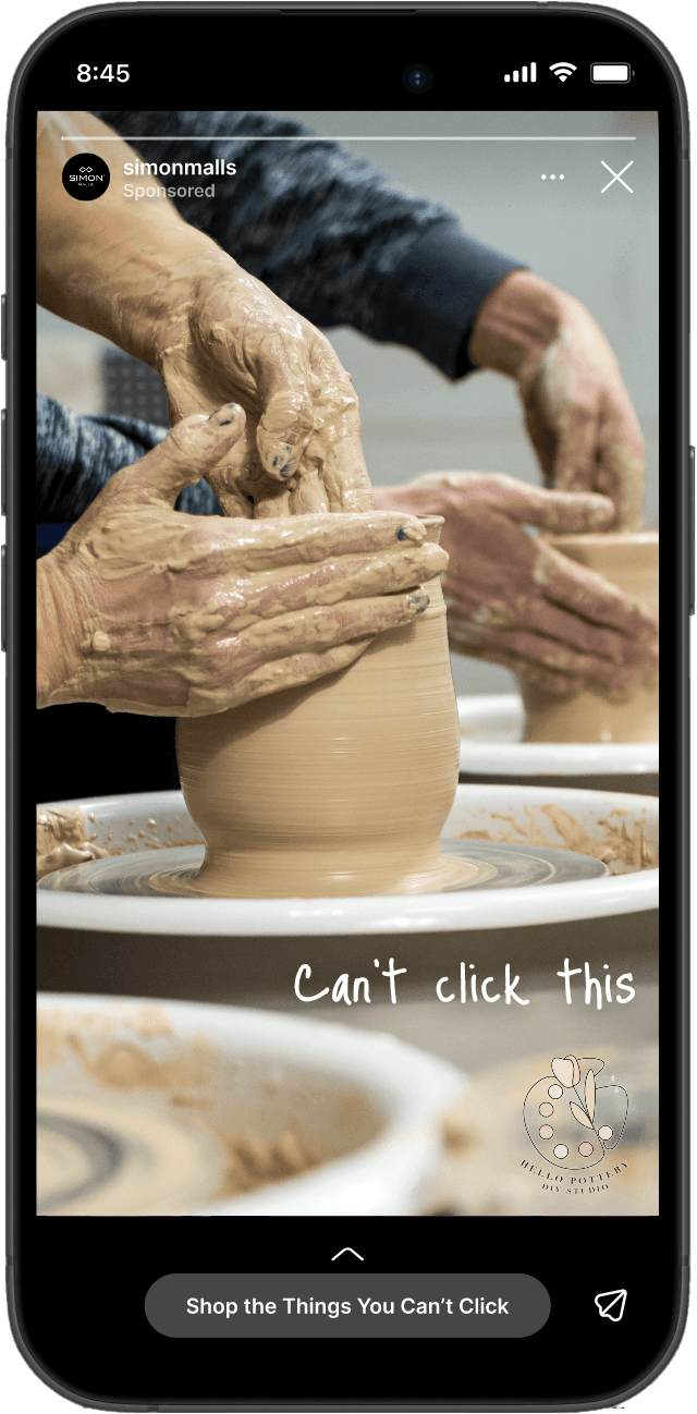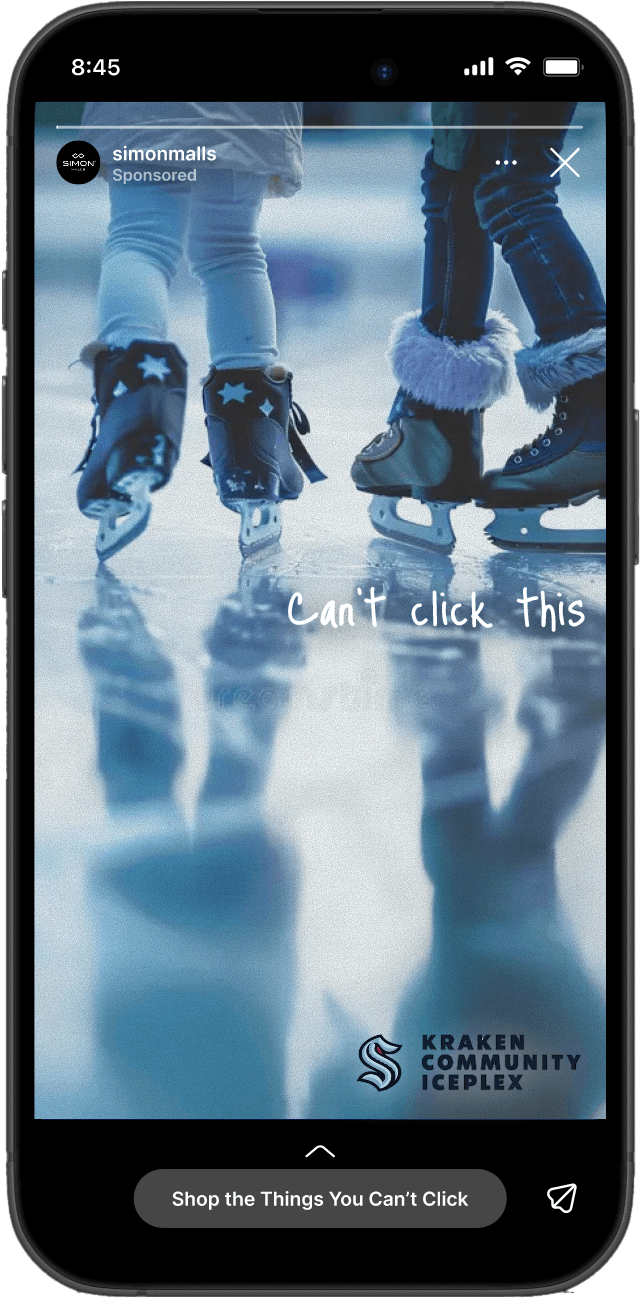 Instagram stories will show users experiences that they can't click on. If they try, they'll be redirected to a Simon Malls store locator.
